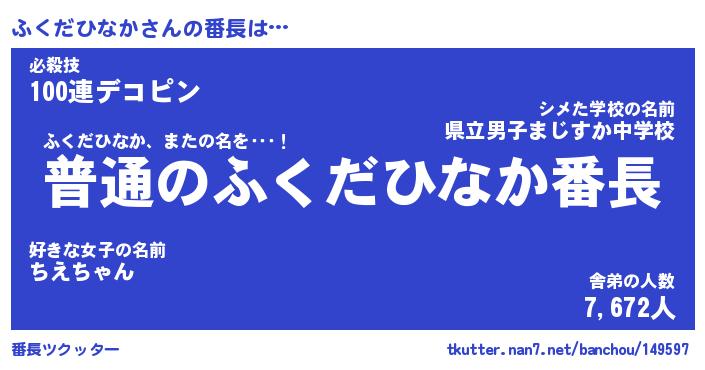 | ヒーロー風カッコイイあだ名 | 『スーパーフクダヒナカ』『炎刃騎士フク』 |