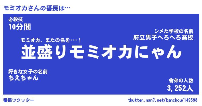| 意味不明あだ名 | 『ペロリンモミオカ』『永久保存モミオカ』 |