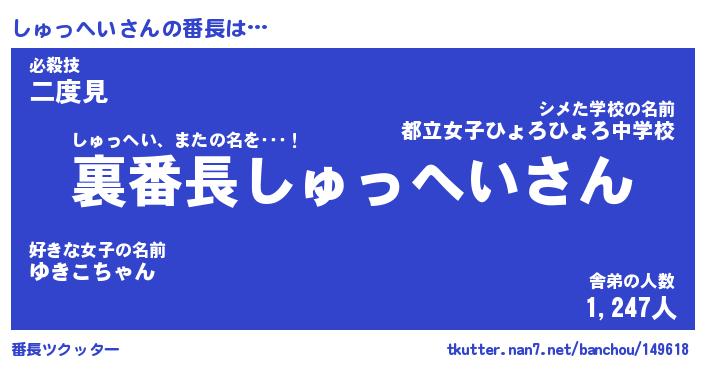 | 2回繰り返すあだ名 | 『しゅしゅ』『ししゅゅ』『ぬるぬる』 |