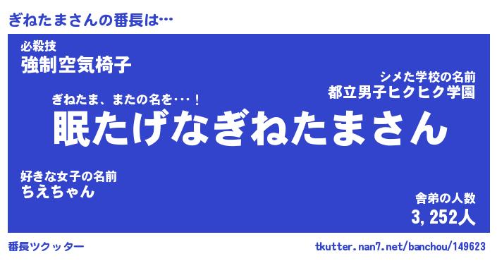 | 2回繰り返すあだ名 | 『ぎねぎね』『ぎぎねね』『うずうず』 |