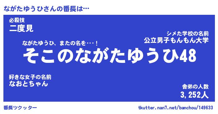 | ヘコむあだ名 | 『ながふぇ~』『牛乳』『ながっちょ』 |