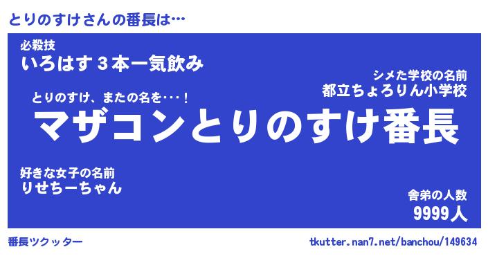 | 伝説のあだ名 | 『封印されし傭兵とりのすけ』 |