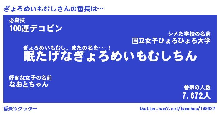 | 胡散臭い通販商品みたいなあだ名 | 『億万長者になれる霊験あらたかなお札…その名も「ぎょろめいもむし」』 |