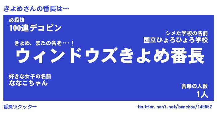 | ピコ太郎風あだ名 | 『キコ三郎』『ピキ二郎』『キヨ八郎』 |