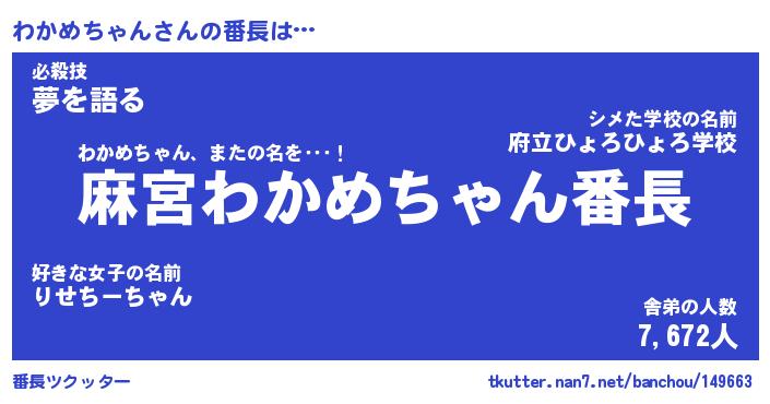 | 肩書あだ名 | 『わかめちゃん社長』『わかめちゃん塾長』 |