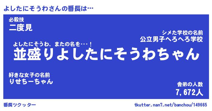| ポケモン風あだ名 | 『ヨシチュウ』『ヨシタダネ』 |