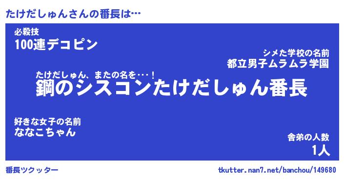 | ヒーロー風カッコイイあだ名 | 『スーパータケダシュン』『黄金騎士タケ』 |