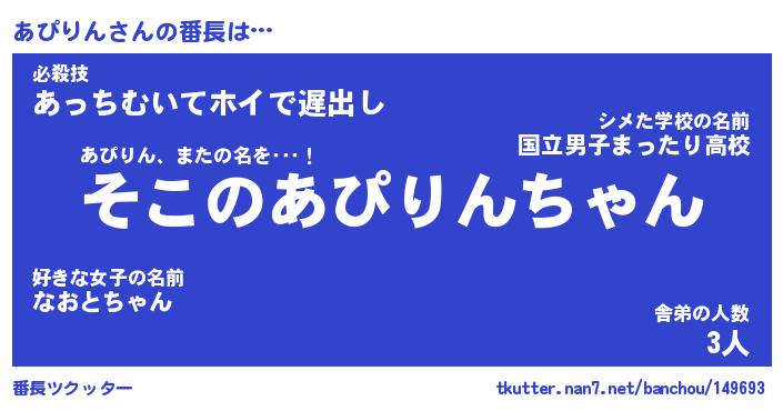 | 意味不明あだ名 | 『ペロリンあぴりん』『永久保存あぴりん』 |