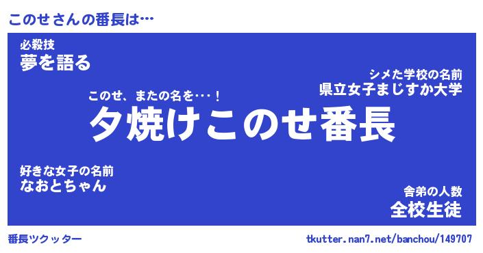 | ヒーロー風カッコイイあだ名 | 『スーパーコノセ』『ウルトラこのせマン』 |