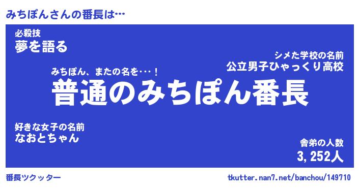 | 意味不明あだ名 | 『ペロリンみちぽん』『永久保存みちぽん』 |