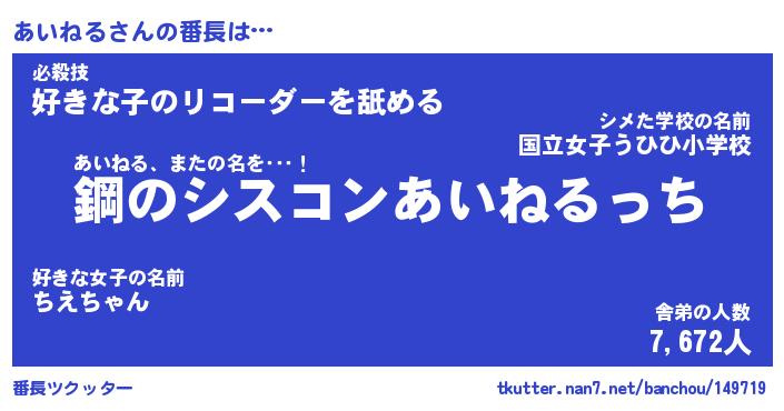 | 意味不明あだ名 | 『ペロリンあいねる』『永久保存あいねる』 |
