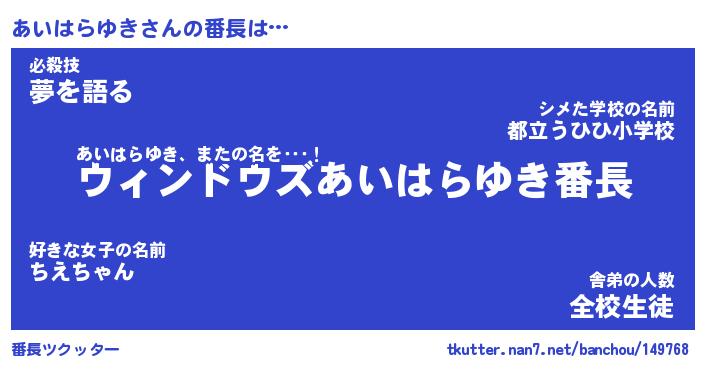 | ヒーロー風カッコイイあだ名 | 『スーパーアイハラユキ』『銀牙騎士アイ』 |