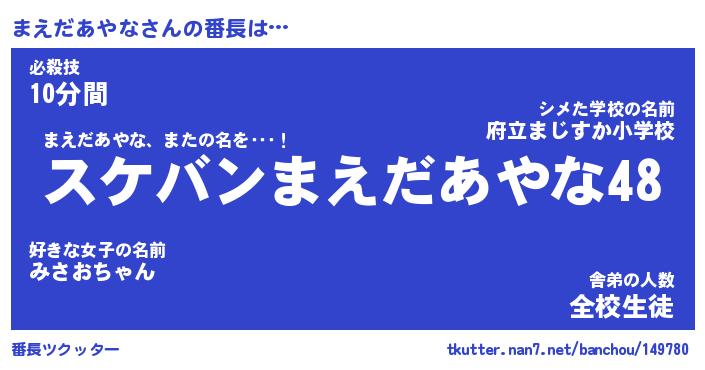 | 恥ずかしいあだ名 | 『プリティーまえだあやな』『まえっちょ』 |
