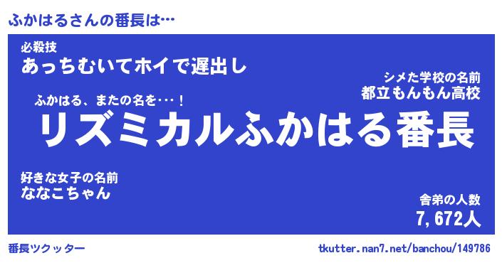 | 伝説のあだ名 | 『伝説のスナイパーふかはる』 |