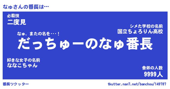| ヒーロー風カッコイイあだ名 | 『スーパーナュ』『ウルトラなゅマン』 |