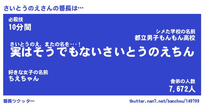 | 肩書あだ名 | 『さいとうのえCEO』『さいとうのえ班長』 |