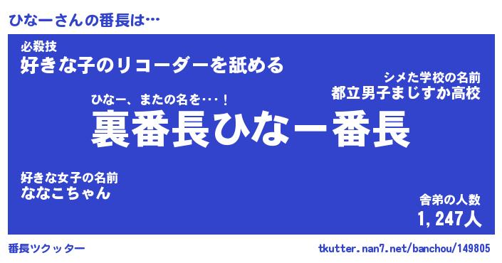 | ヒーロー風カッコイイあだ名 | 『スーパーヒナー』『ウルトラひなーマン』 |