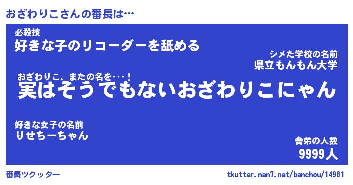| ヘコむあだ名 | 『おざもー』『なまこ酢』『おざ太郎』 |