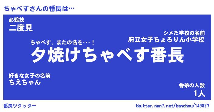 | 意味不明あだ名 | 『ペロリンちゃべす』『永久保存ちゃべす』 |
