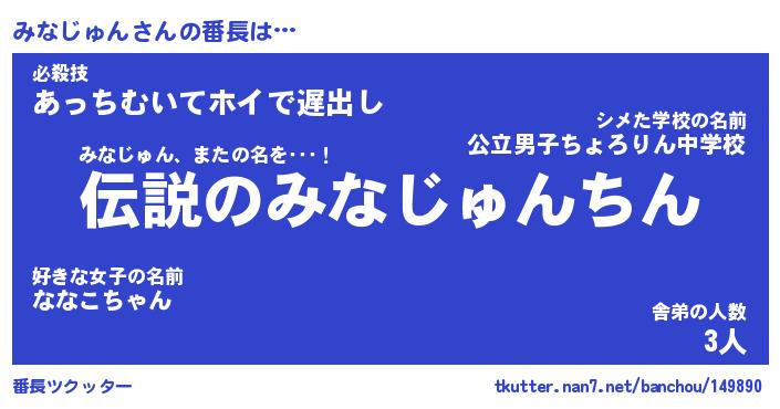 | 伝説のあだ名 | 『伝説のスナイパーみなじゅん』 |