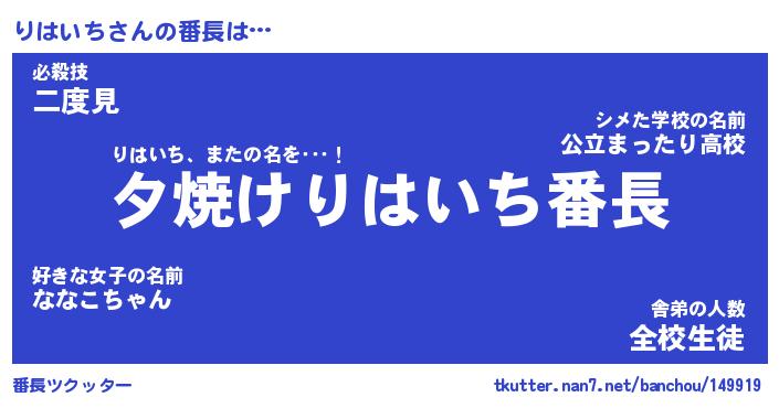 | 肩書あだ名 | 『りはいち御曹司』『りはいち大統領』 |