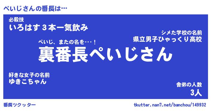 | ヘコむあだ名 | 『ぺいふぇ~』『なまこ酢』『ぺいを』 |