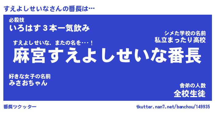| 男性向けラノベタイトル風あだ名 | 『スエヨシセイナアートオンライン』 |