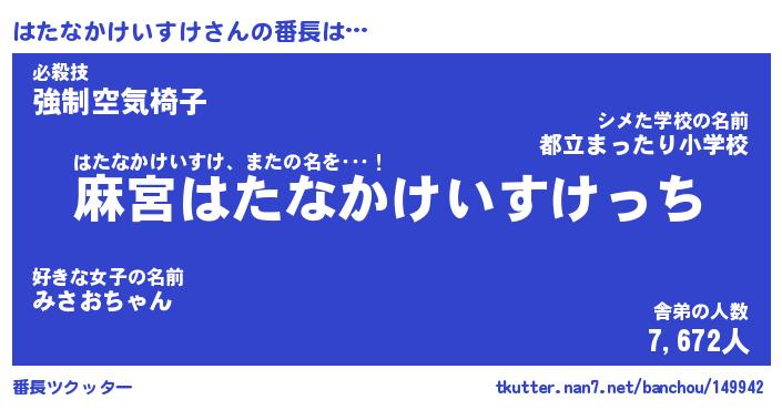 | 伝説のあだ名 | 『不死鳥のスナイパーはたなかけいすけ』 |