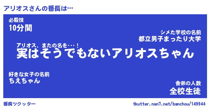 | 意味不明あだ名 | 『ペロリンアリオス』『永久保存アリオス』 |