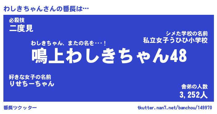 | ポケモン風あだ名 | 『ワシチュウ』『ワシキダネ』 |