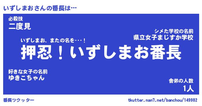 | 肩書あだ名 | 『いずしまお御曹司』『いずしまお副担任』 |