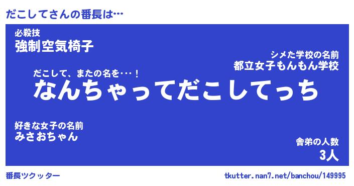 | 意味不明あだ名 | 『ペロリンだこして』『永久保存だこして』 |