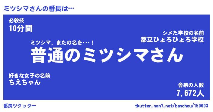 | 肩書あだ名 | 『ミツシマ社長』『ミツシマ大統領』 |