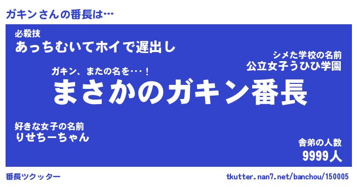 | 伝説のあだ名 | 『伝説のスナイパーガキン』 |