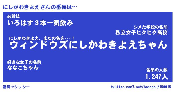 | ヒーロー風カッコイイあだ名 | 『スーパーニシカワキヨエ』 |