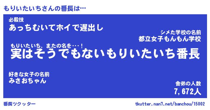 | 肩書あだ名 | 『もりいたいち御曹司』 |