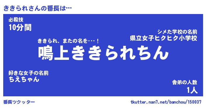 | 意味不明あだ名 | 『ペロリンききられ』『永久保存ききられ』 |