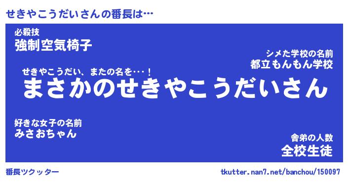 | 伝説のあだ名 | 『伝説のスナイパーせきやこうだい』 |