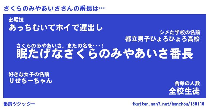 | ヒーロー風カッコイイあだ名 | 『スーパーサクラノミヤアイサ』 |