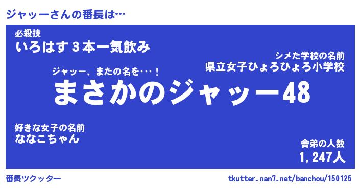 | 意味不明あだ名 | 『ペロリンジャッー』『永久保存ジャッー』 |