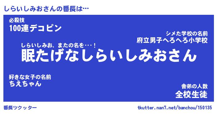 | 意味不明あだ名 | 『ペロリンしらいしみお』 |