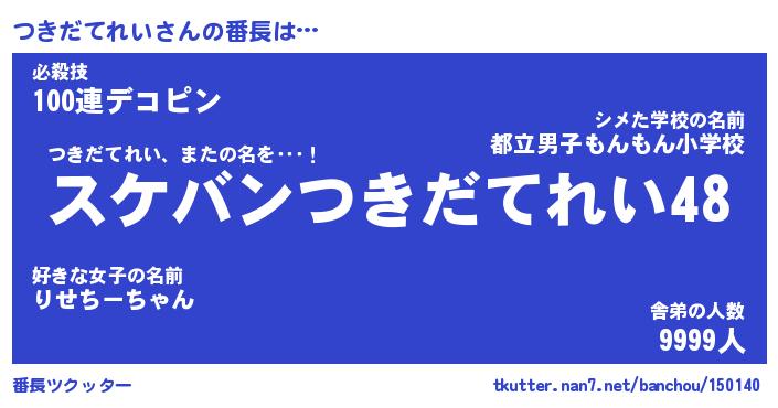 | ヒーロー風カッコイイあだ名 | 『スーパーツキダテレイ』『黄金騎士ツキ』 |