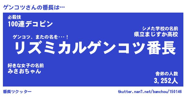 | ヒーロー風カッコイイあだ名 | 『スーパーゲンコツ』『天弓騎士ゲン』 |