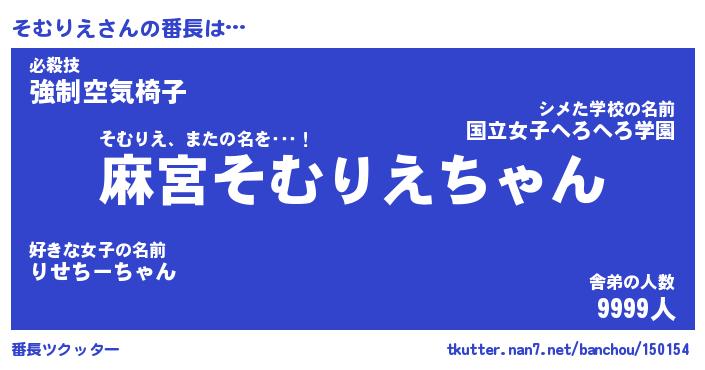 | 意味不明あだ名 | 『ペロリンそむりえ』『永久保存そむりえ』 |