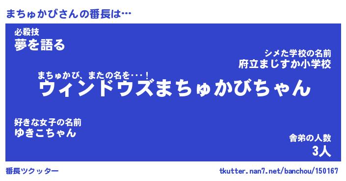 | 伝説のあだ名 | 『伝説のスナイパーまちゅかび』 |