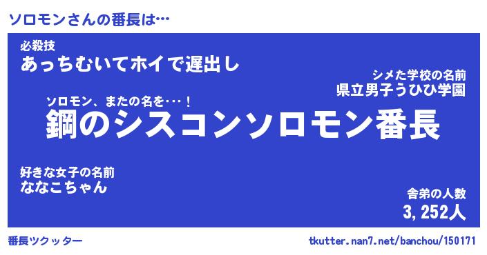 | 意味不明あだ名 | 『ペロリンソロモン』『永久保存ソロモン』 |