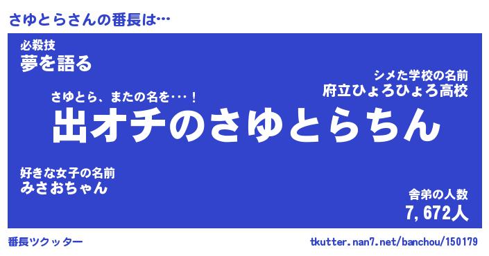 | ヒーロー風カッコイイあだ名 | 『スーパーサユトラ』『炎刃騎士サユ』 |
