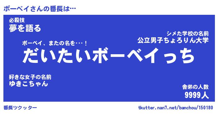 | ヘコむあだ名 | 『ボーにー』『豆乳』『ボーっちょ』 |