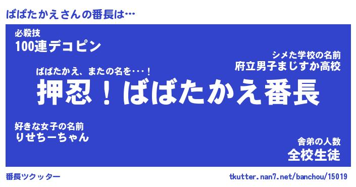| ヒーロー風カッコイイあだ名 | 『スーパーババタカエ』『暗黒騎士ババ』 |