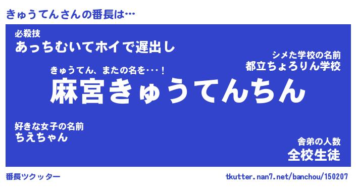| 2回繰り返すあだ名 | 『きゅきゅ』『ききゅゅ』『うずうず』 |